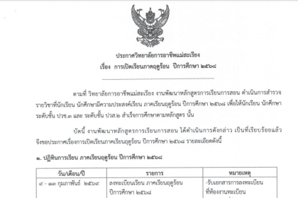 ประกาศวิทยาลัยฯ การเปิดปิดเรียนภาคฤดูร้อน ปีการศึกษา 2568